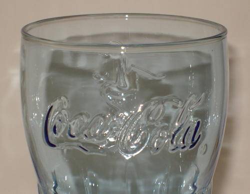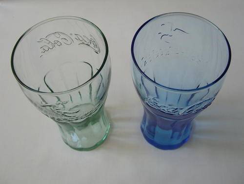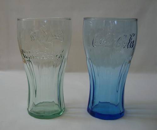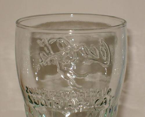 A green and blue glass Coca-Cola glass, issued to commemorate the 2010 FIFA World Cup.
