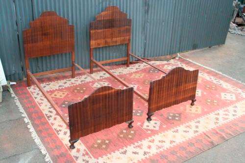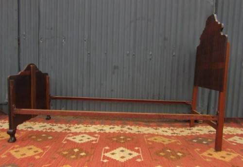 These gorgeous vintage solid Imbuia ball and claw single beds include the headboards, the footboards and the connecting mounting struts and are in excellent condition for their age. Each bed measures 201cm long x 95cm wide x 135cm high to the top of the headboard. There is absolute minor/ normal wear and tear and they look absolutely great. The beds would be ideal for a room that needs two single beds or for a room that is being shared by two people. Please view the pics carefully to fully appreciate these awesome single beds and to confirm the condition.