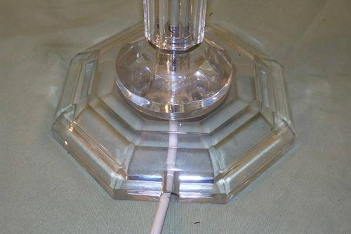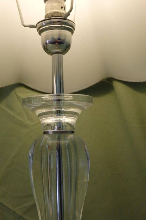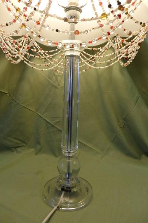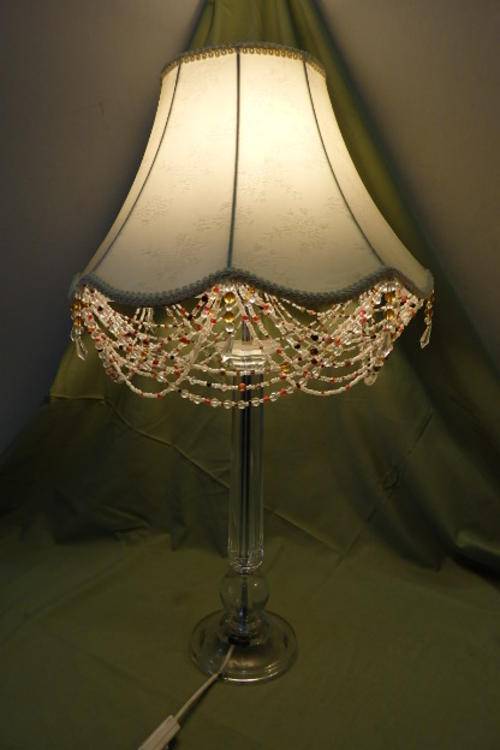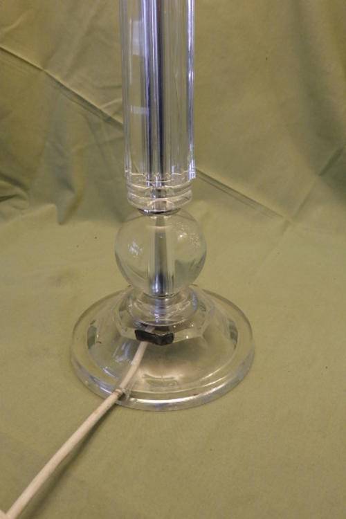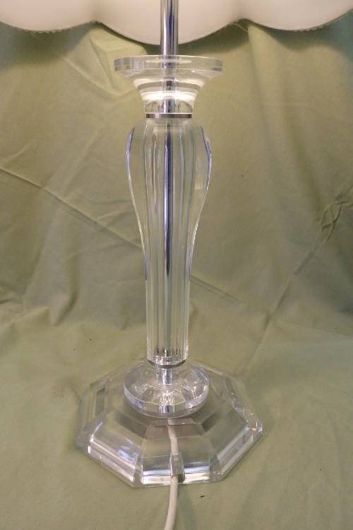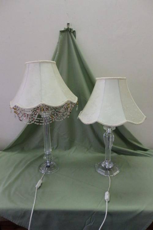 THESE TWO FABULOUS TALL CLEAR PERSPEX TABLE LAMPS WITH CHROMED FINISHING AND BEAUTIFUL TEXTURED FABRIC LAMP SHADES MEASURE A VERY DECENT 62.5cm TALL AND 71cm TALL RESPECTIVELY. THE LAMP SHADES HAVE BEEN EXQUISITELY FINISHED WITH EMBROIDERED PIPING AND THE TALLER LAMP HAS AWESOME GLASS BEADWORK ON IT. THE LAMPS ARE IN WONDERFUL CONDITION WITH MINIMAL USAGE AND AGE RELATED WEAR AND TEAR. THEY ARE AWESOME!!!!!