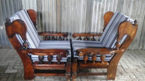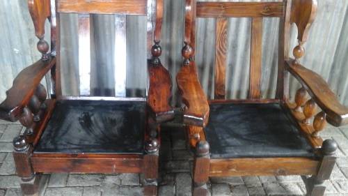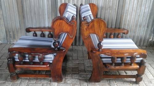 TWO FABULOUS VINTAGE SOLID WOOD CARVED ARM CHAIRS. SINGLE SEATERS.