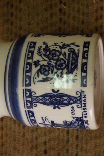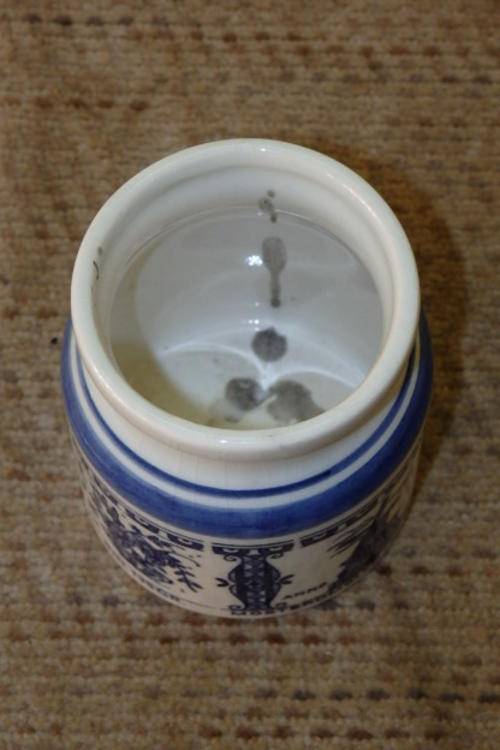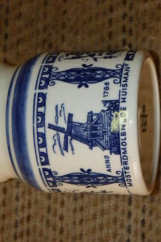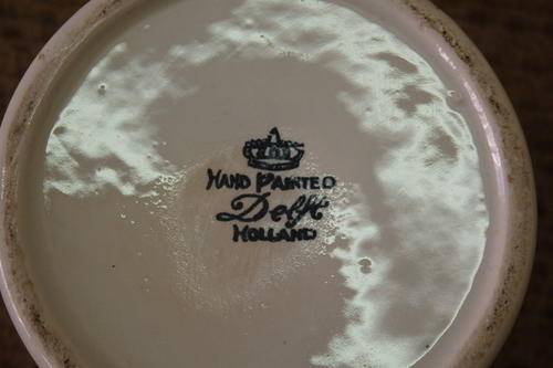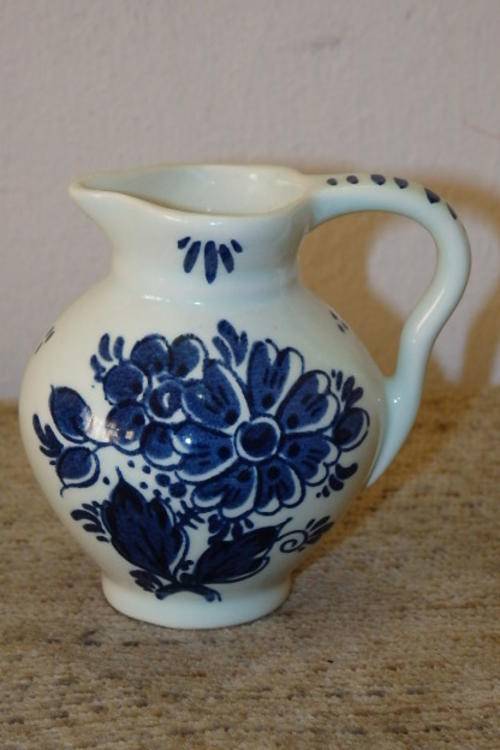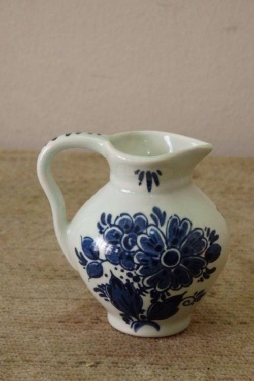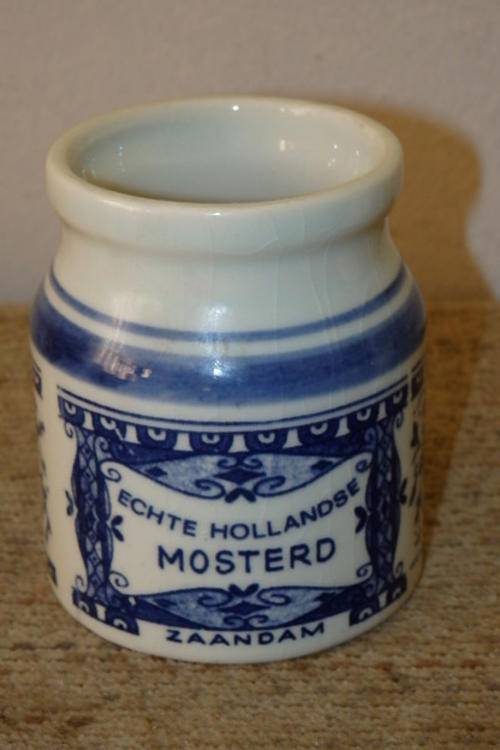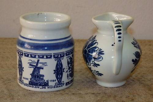 THESE TWO FANTASTIC VINTAGE DELFT OF HOLLAND HAND PAINTED PORCELAIN PIECES INCLUDING A "ECHTE HOLLANDSE MOSTERD" (GENUINE DUTCH MUSTARD) JAR FROM ZAANDAM AND PITCHER STYLE CREAMER. THEY BOTH MEASURE JUST OVER 8cm TALL AND NEITHER THE JAR OR THE CREAMER HAVE CHIPS OR CRACKS IN THEM AND THERE IS A LITTLE CRAZING IN BOTH PIECES..