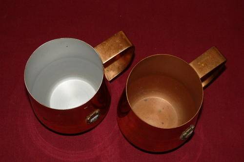 THESE TWO FANTASTIC VINTAGE "NORTHERN RHODESIAN" MADE ATLANTA REAL COPPER WARE "BRANDED" COPPER MUGS/ TANKARDS WITH MASERU & THE GOLDEN GATE DECALS EACH MEASURE ROUGHLY 11.5cm TALL. PLEASE NOTE THAT YOU ARE BIDDING PER COPPER MUG TO TAKE THEM BOTH.