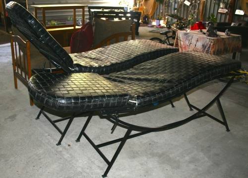 TWO FANTASTIC VINAGE BEAUTY BEDS WITH METAL BASES AND ADJUSTABLE BACKS