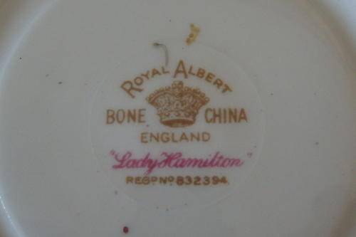 THESE TWO GORGEOUS VINTAGE ROYAL ALBERT "LADY HAMILTON" FINE BONE CHINA SAUCERS ARE PERFECT FOR SOMEONE THAT HAS THE LADY HAMILTON TEA SET AND NEEDS SPARES. THE SAUCERS ARE 14cm ACROSS AND ARE IN GOOD CONDITION FOR THEIR AGE WITH NO CHIPS OR CRACKS IN EITHER OF THE SAUCERS. THE BACK STAMP CONFIRMS THE SAUCERS WERE MADE BETWEEN 1945 AND 1950.