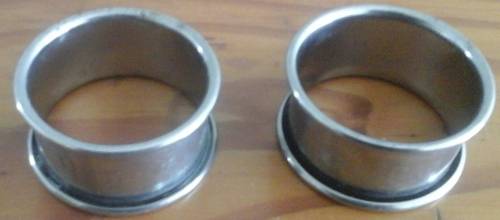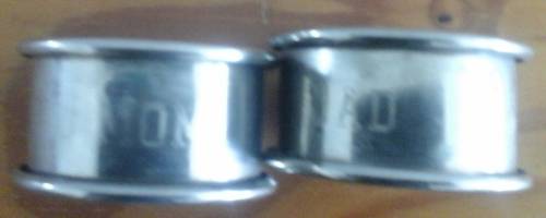 TWO GORGEOUS VINTAGE SERVIETTE RINGS. INSCRIBED 'MOM' & 'DAD'.