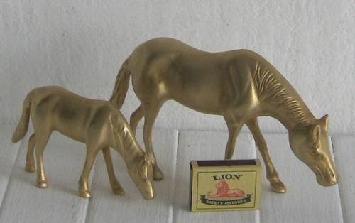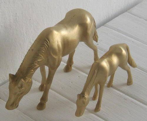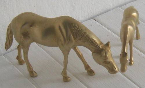 TWO HEAVY BRASS ORNAMENTAL HORSES