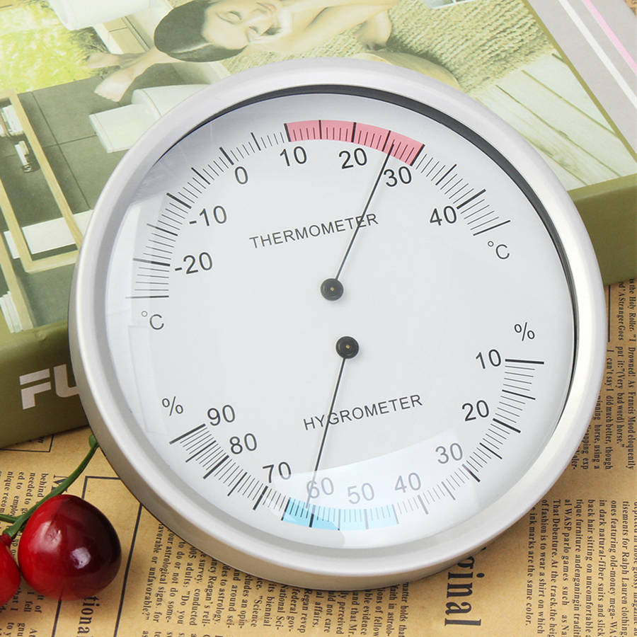 Features:? ? * Made of high quality aluminum material,not rust and durable. * Automatic sensing, no battery, environmental protection. * Can measure temperature and humidity at the same time, very convenient. * With a hole on the back to hang up. * Suitable to hospital,warehouse,museum,library ,farm etc. ? Specification: ? Material:Aluminum+Glass Measurement accuracy:1?ᆪC/RH Humidity measurement range:0-90(RH) Temperature measurement range:-20-40?ᆪC Size:13.2x3cm ? Package includes:? ? 1 x Two In One Barometer ? Details pictures:?