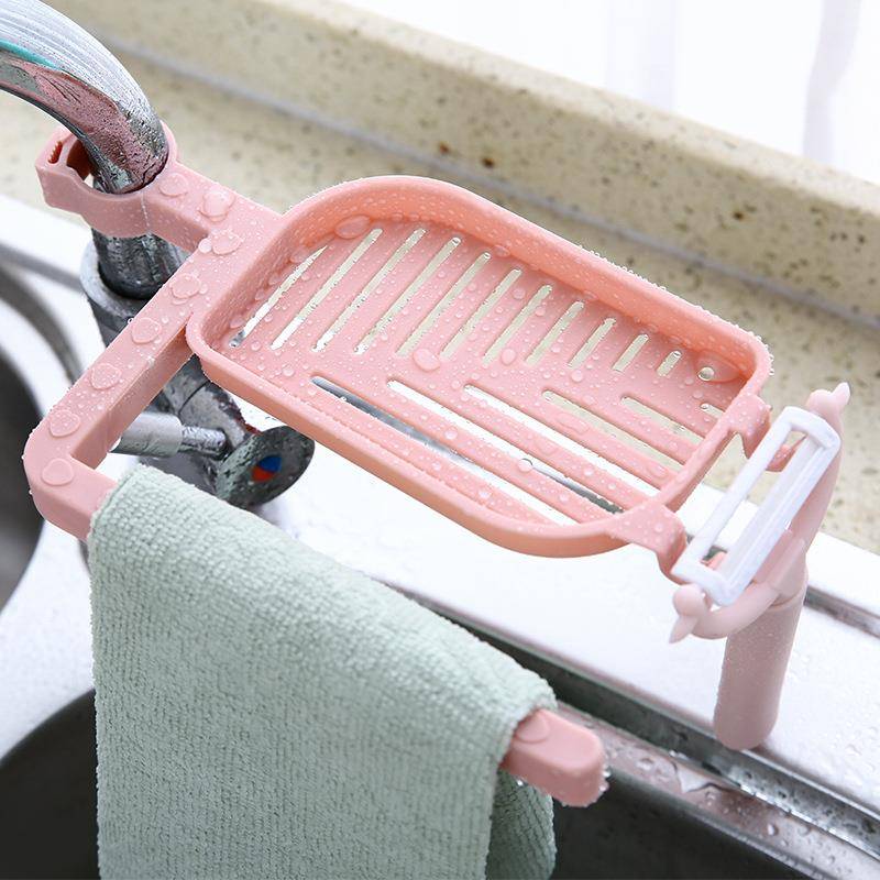 Two in one Water Faucet Asphalt Shelving Soap Box Sink Storage Rack Household Kitchen Sponge Wipes Asphalt Rack