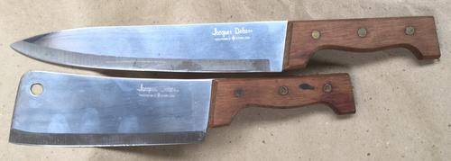 Two Jacques Debarr kitchen knives, as new. Knife length 35cms