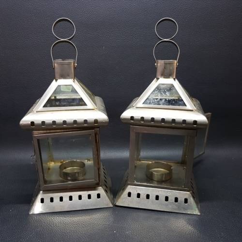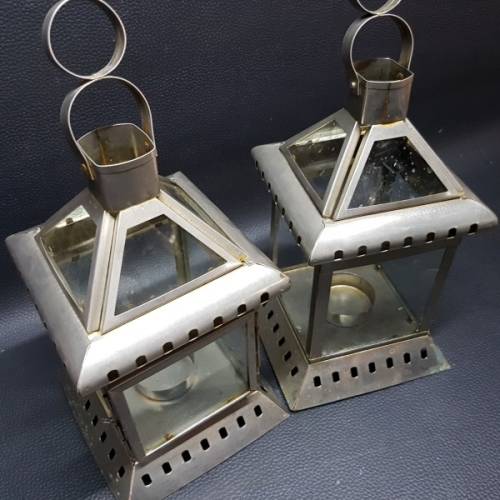 Two Large Pressed Metal Tee Lite Lanterns (Bid for Both)