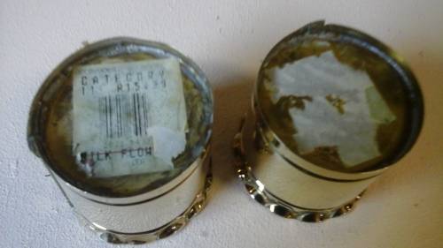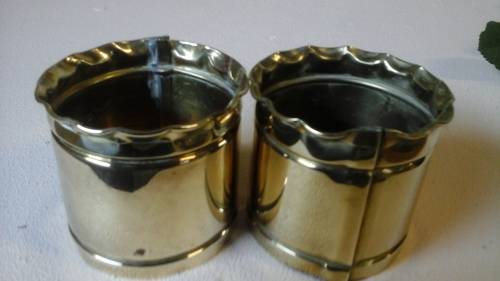 THEY ARE MADE FROM BRASS AND ARE CYLINDRICAL IN SHAPE WITH A SIMPLE BUT PRETTY DESIGN. THE BRIMS HAVE A CURVY DESIGN.