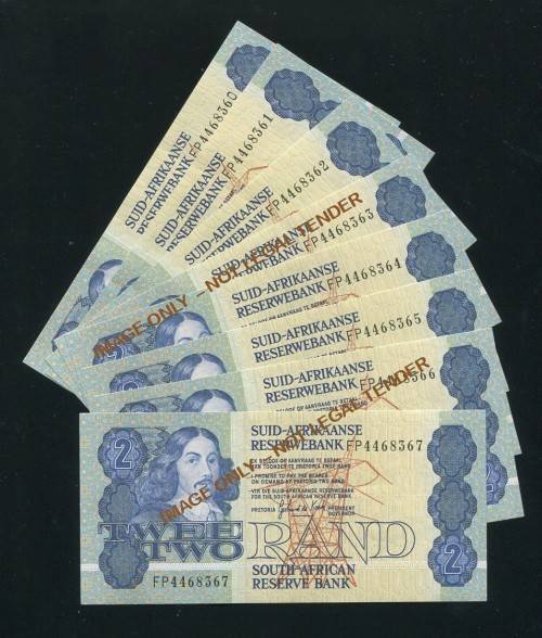 TWO RAND UNC G DE KOCK BANKNOTES IN SERIES 3rd ISSUE X 8 NOTES
