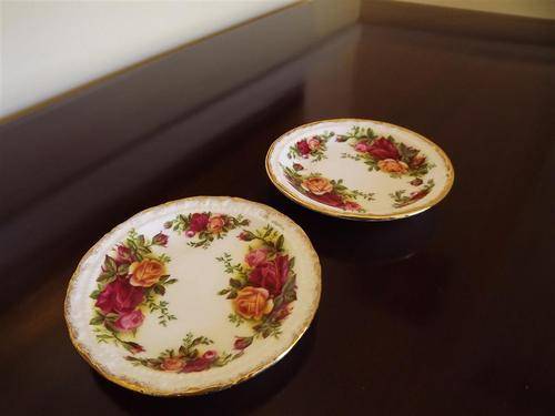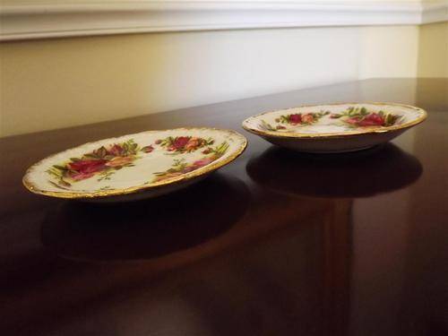 You are looking at two (2) bone china coasters or flat dishes by Royal Albert in the Old Country Roses design. Perfect to use as butter dishes. One bid for the two dishes.