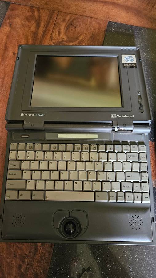 The slimnote 5001T has broken screen hinges. Powers on but no screen display. No charger.