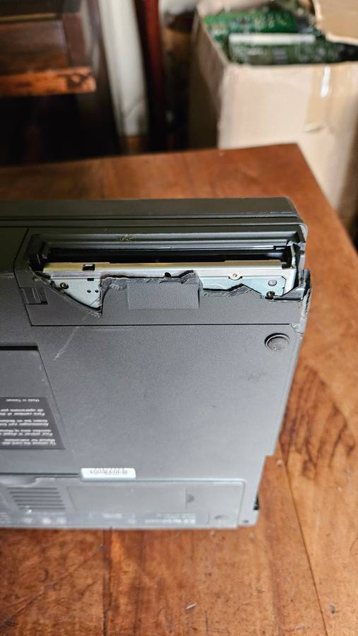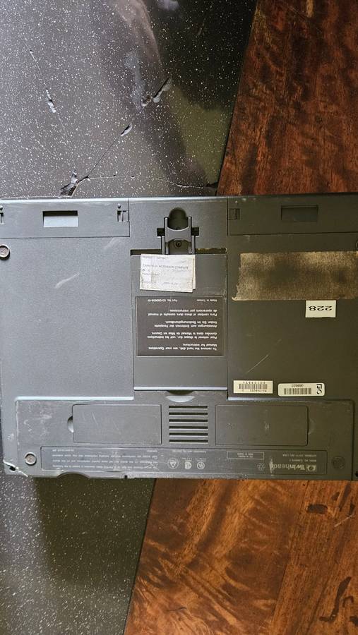 The slimnote 350 C has a broken screen hinge, side cover is missing and the plastic casing is broken as per photos. Powers on but no screen display. No charger unit.