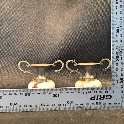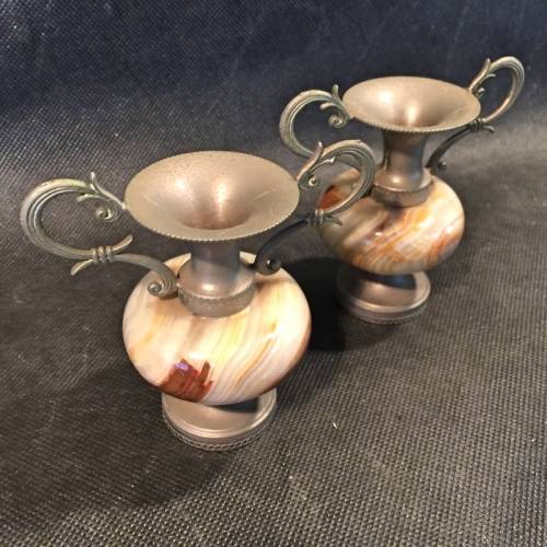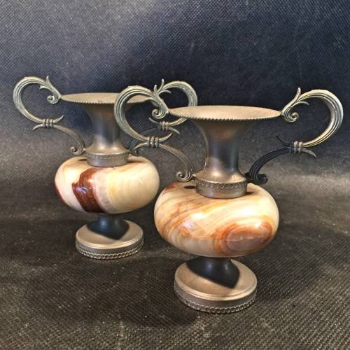 Two Small Alabaster and Silver-plate Vases (Bid for Both)