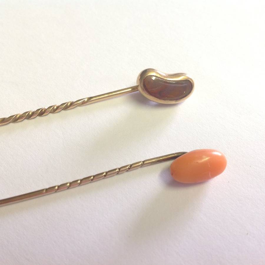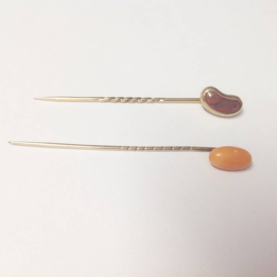 On auction are these two Victorian Antique Stickpins in solid 9 Carat Gold.