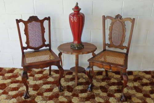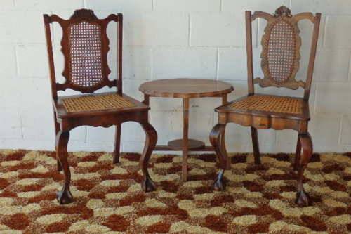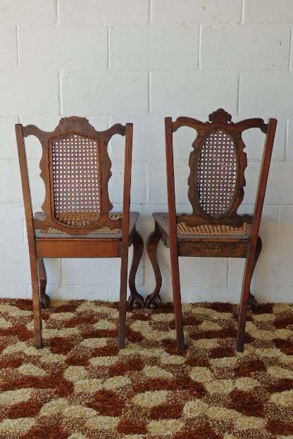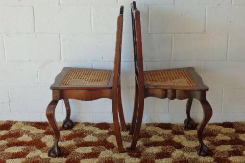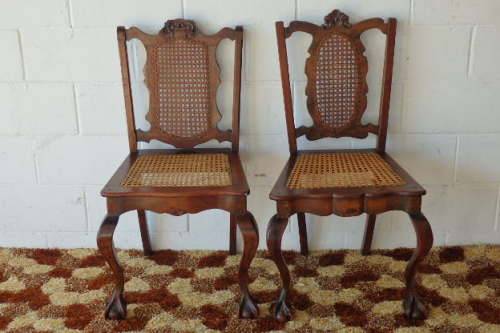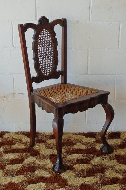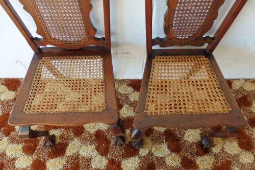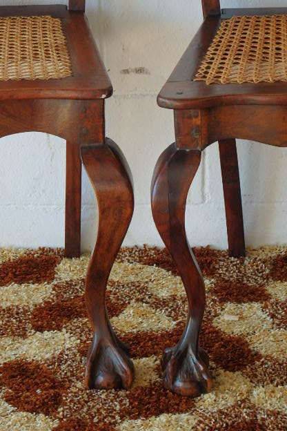 THESE TWO SPECTACULAR ANTIQUE EDWARDIAN "CARVED" CABRIOLE LEG, BALL AND CLAW RATTAN OCCASIONAL CHAIRS ARE IN STUNNING CONDITION AND MEASURE 510mm LONG x 420mm DEEP x 940mm HIGH AND 520mm LONG x 430mm DEEP x 970mm HIGH RESPECTIVELY. THE RATTAN IS IN EXCELLENT CONDITION ON BOTH THE BACK OF THE CHAIRS AS WELL AS THE SEATS. BOTH CHAIRS SIT VERY WELL ON THE FLOOR AND ARE PERFECT FOR THAT LITTLE SOMETHING SPECIAL IN A ROOM. PLEASE VIEW THE PICS CAREFULLY TO FULLY APPRECIATE THESE TWO STUNNING EDWARDIAN CHAIRS.