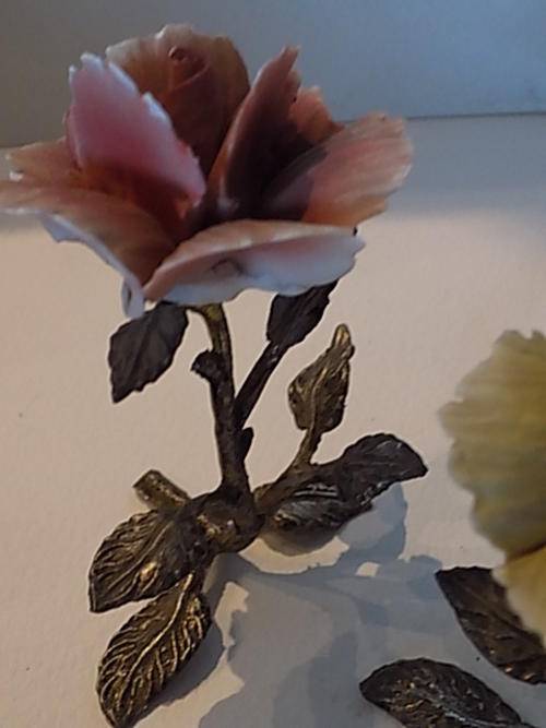 Two Standing Metal Stems with Hardened Porcelain Roses