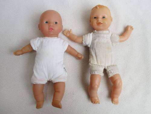 16CM AND 17CM TALL - THE TIP OF THE LITTLE BOY'S ONE FINGER IS MISSING (LAST IMAGE) BUT OTHER THAN THAT THEY ARE BOTH IN GOOD CONDITION - SO CUTE! REFER IMAGES