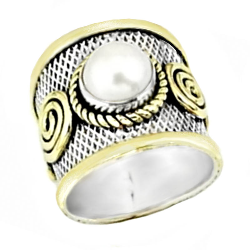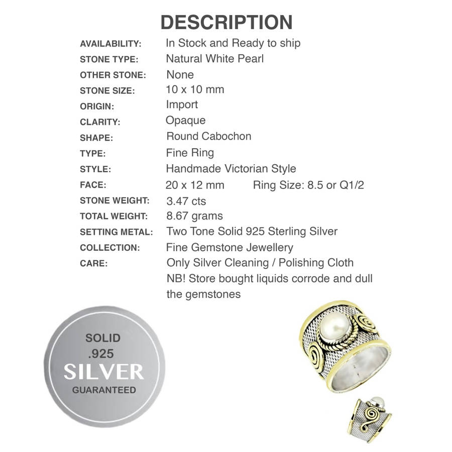 HANDMADE TWO TONE NATURAL WHITE PEARL FINE RING SIZE US 8.5 or Q1/2