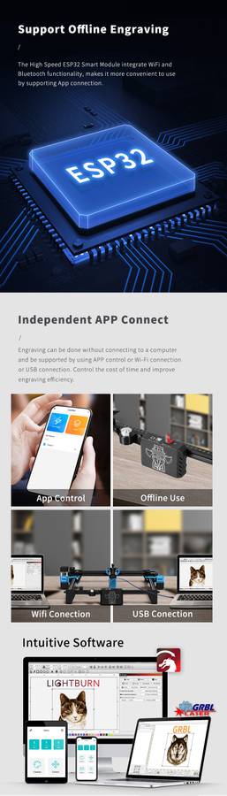 Operating Software: Laser GRBL Lightburn with XP/WIN 10/WIN 11/WIN 8/Mac System
