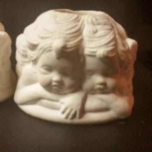 TWO UNPAINTED CERAMIC ITEM WITH FOUR ANGELS AROUND EACH ITEM