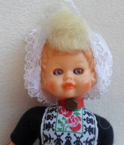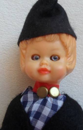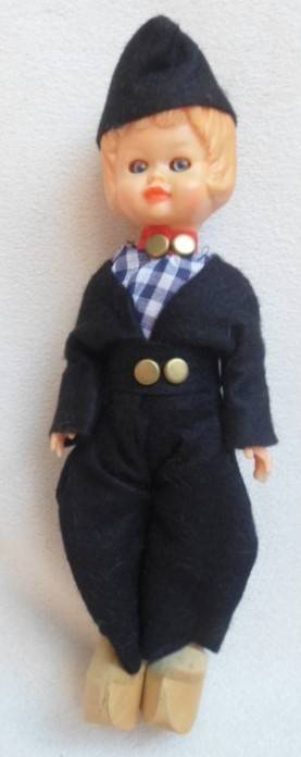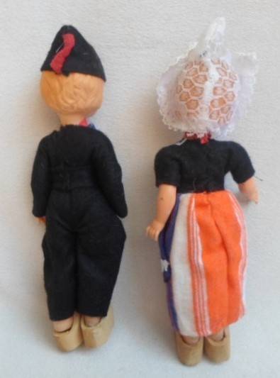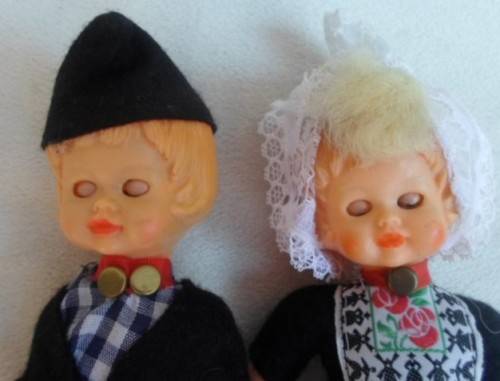 18CM TALL - NOT SURE IF THEY ARE CELLULOID OR OTHER HARD PLASTIC, FULLY JOINTED WITH OPEN/CLOSE EYES AND IN GREAT CONDITION, BEAUTIFULLY DRESSED AND WEARING WOODEN CLOGS - CUTE AND COLLECTABLE! REFER IMAGES
