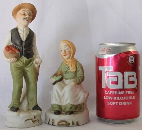 These two wonderful hand painted figurines of a farmer and of his wife would look perfect in a display cabinet or as part of a figurine collection display. The figurines measure between 13cm and 17.5cm high. There is minimal usage related wear and tear and neither of the figurines have chips or cracks in them. Please view the pics carefully to fully appreciate these wonderful ceramic figurines and to confirm the condition.