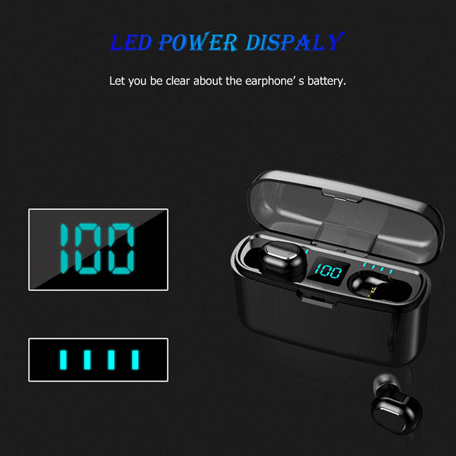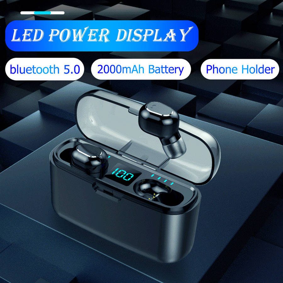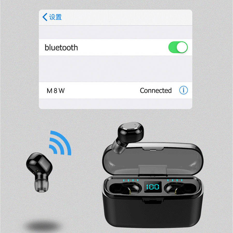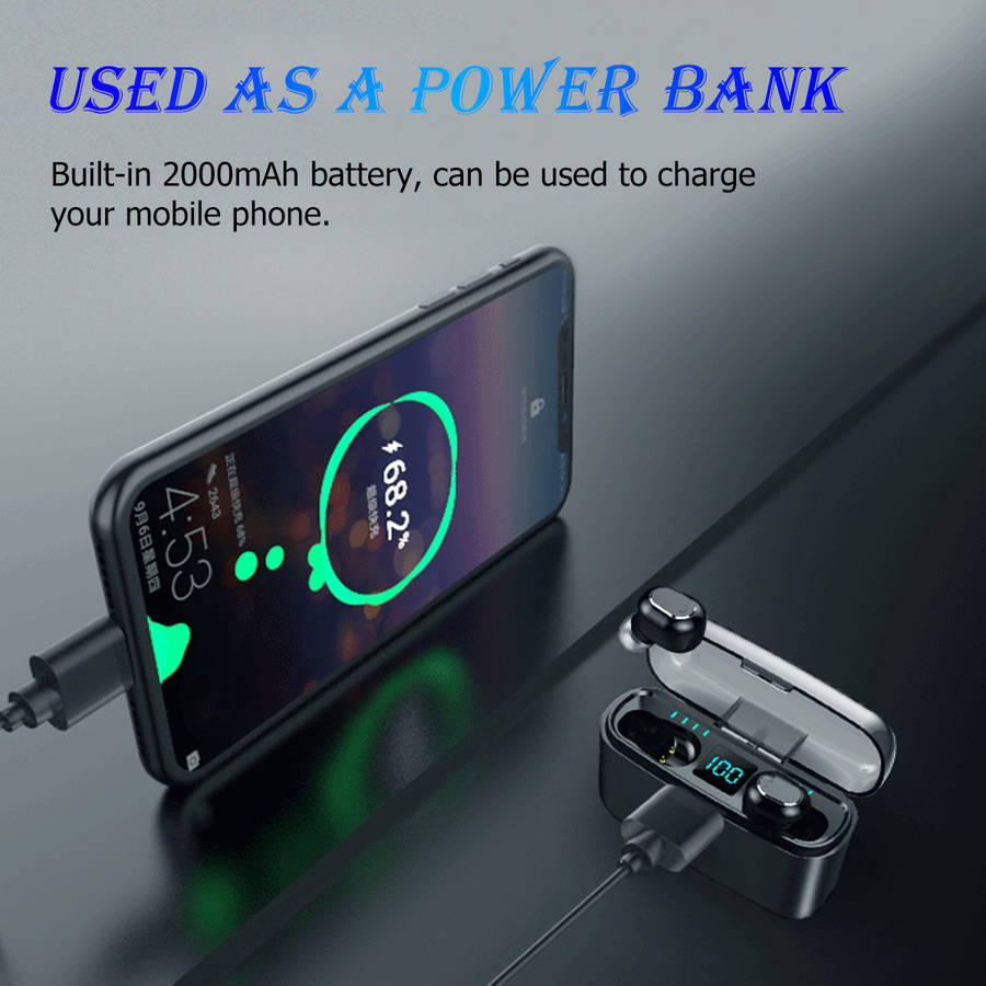 TWS Mini bluetooth LED Digital Display Earphone Waterproof Auto Pair Headset with 2000mAh Power Bank