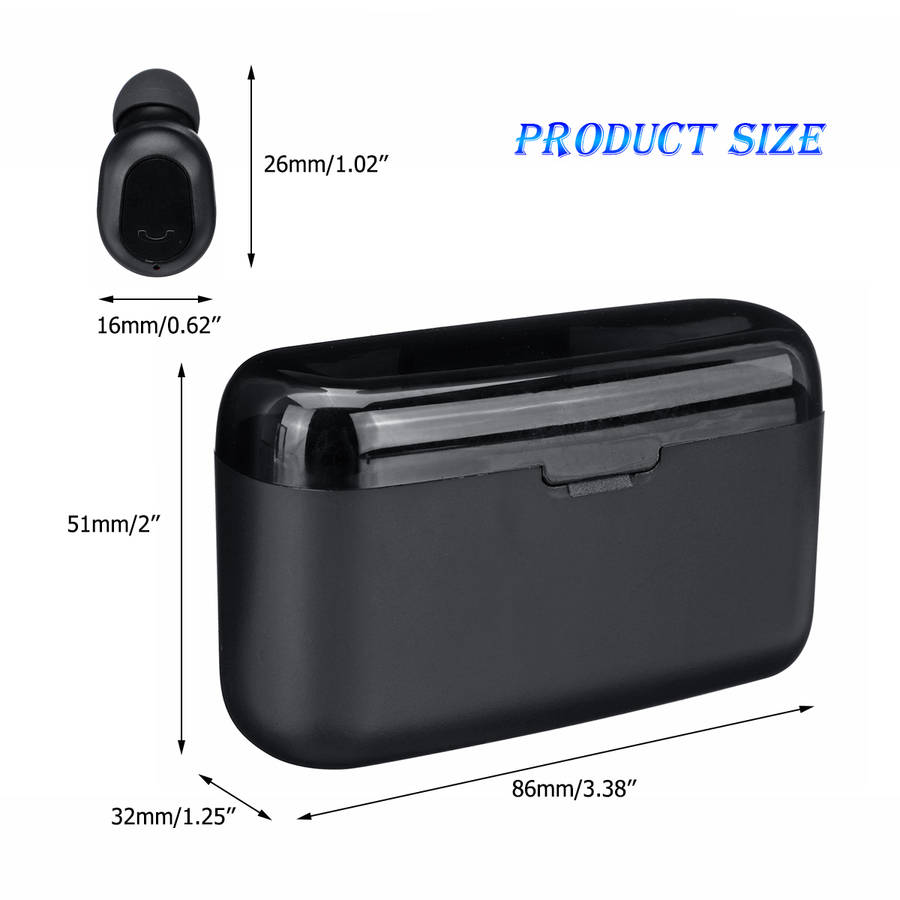 Package Includes: 2 x Earphones 1 x Charging Case 1 x Charging Cable 2 x Pairs of Earpiece 1 x User Manual ? Specification: Product Name: TWS bluetooth Earphone Model: D95488 Size: 86x32x51mm / 3.38''x1.25''x2'' Color: Black Material: ABS(Acrylonitrile Butadiene Styrene) bluetooth Version: V5.0 Charging Case Battery: 2000mAh Talk Time: 5-6 Hours Music Time: 5-6 Hours Charging Time:? Input: 5V/1.5A Output: 5V/1A ? Feature: -bluetooth 5.0, more stable and faster connection, low consumption. -LED Power display, let you be clear about the earphone' s battery. -Auto pairing, take them up and pairing automatically, more convenient. -Built-in 2000mAh battery, can be used to charge your mobile phone. -Also can be used as a phone holder.