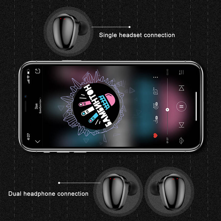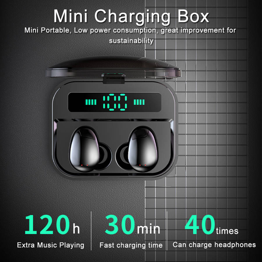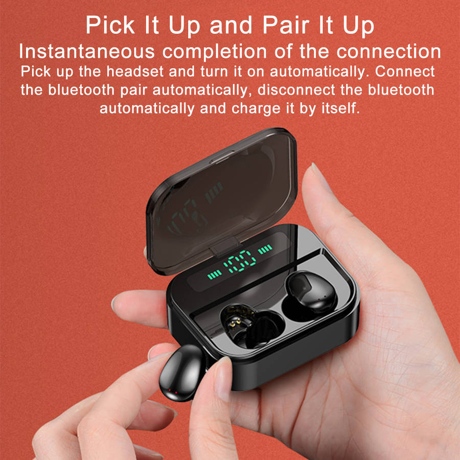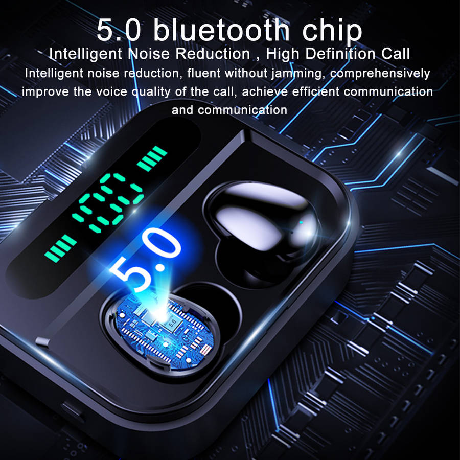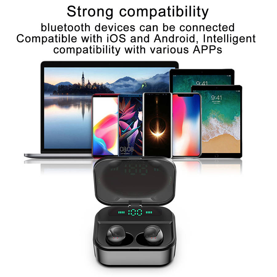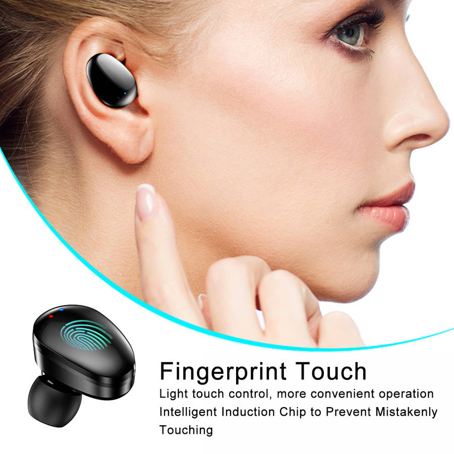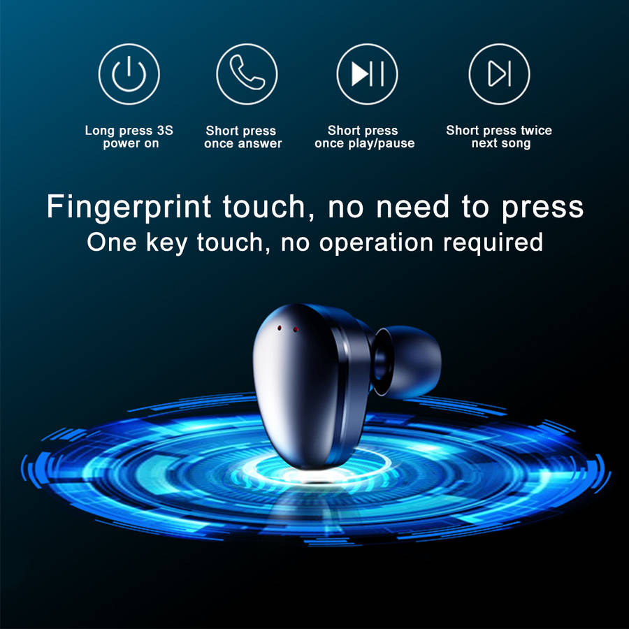 ? 1. With portable magnetic charging box design, can keep full battery state. And necessary for driving/working, indoor and outside sports. 2. bluetooth 5.0/HD Call Intelligent noise reduction, fluent withoutjamming, improve the voice quality ofthe call 3. Perfect for workouts.? The bluetooth earphone ensures comfortable and secure fit. Lightweight design make you freely enjoy music when running, jogging, cycling, driving, camping, hiking, gym exercise and so on. 4. With power display, you can always know your headset power situation, leaves you a more convenient and comfortable life. 5. Universally compatible with all bluetooth-enabled phones, tablet, notebook etc.. 6. IPX5 sweat proof Waterproof daily life, supportoutdoor sports in rainy days 7.Fingerprint touch/no need topress With fingerprint touch, relievepressure tor your ears 8.Supporting uniaural/binaural connections ? Specification: