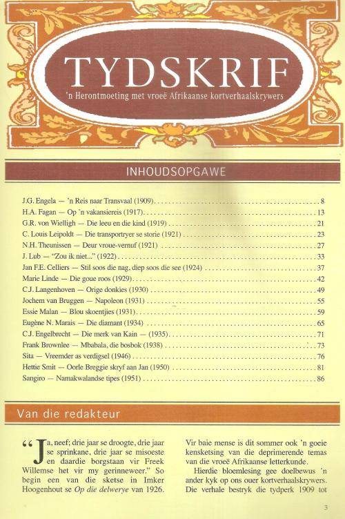 Tydskrif "n Herontmoeting met Vroe Afrikaanse Kortverhaalskryvers Red. Daniel Hugo