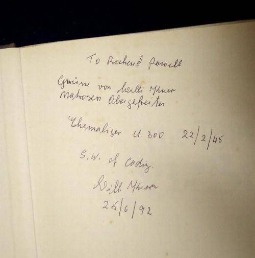 What makes this book very special is the fact that Wilhelm Knorr, a survivor of the sinking of U-300 signed this book with a message.