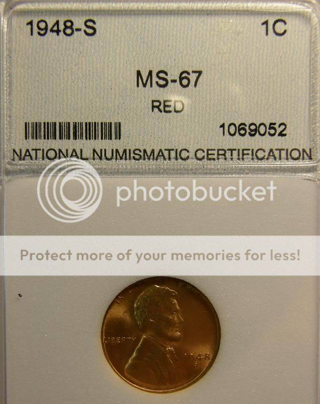 You are bidding on a MS 67 1948-S 1 c which has been graded by the National Numismatic Certification agency.