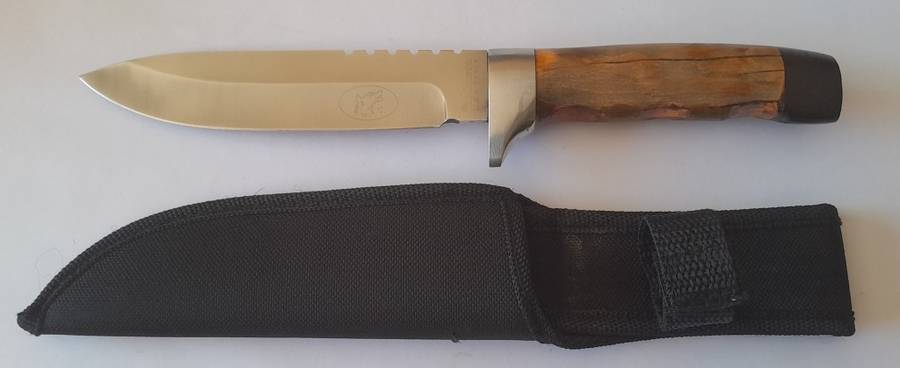 U.S.A. Saber Columbia Wolf Survival Knife with Belt Sheath. In excellent condition - like new.