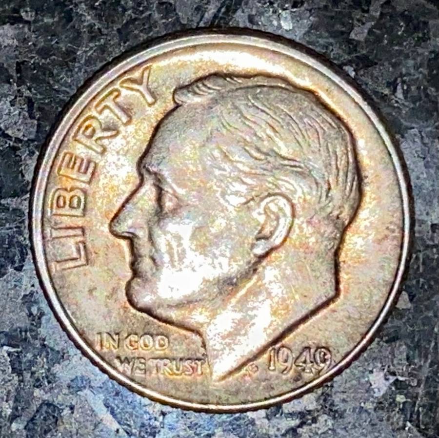 U S A SILVER MERCURY 1 DIME - 10 CENT 1949 - PHILADELPHIA MINT - SILVER ,900
