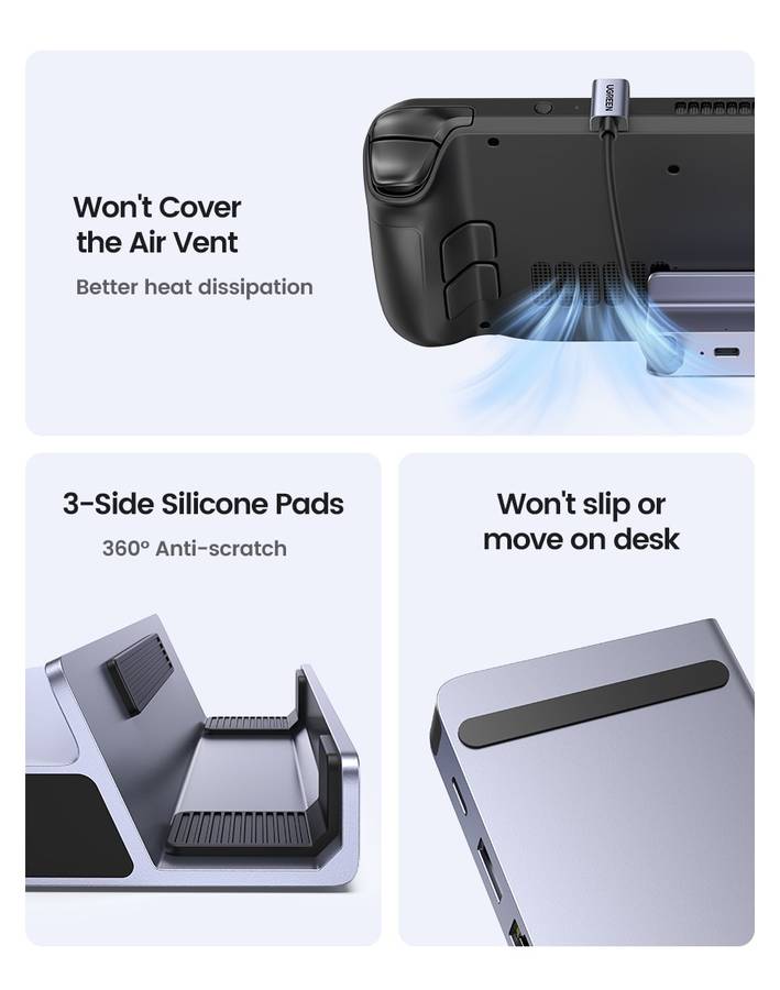 ¬ムᅠ Won't Cover the Air Vent,for better heat dissipation¬ムᄀ 3-Side Silicone Pads,for 360ᅡᄚ Anti-scratch¬ムᄁ Bottom silicone pad,the dock won't slip or move on desk