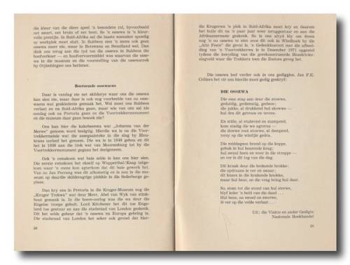 Uit die ou dae in Suidwes Boek 1 deur Walter Moritz Die ossewa vertel (1972). A5, "staple"-boekie, 32 bls. Buiteblad effens verweer, binnewerk in goeie leesbare toestand.