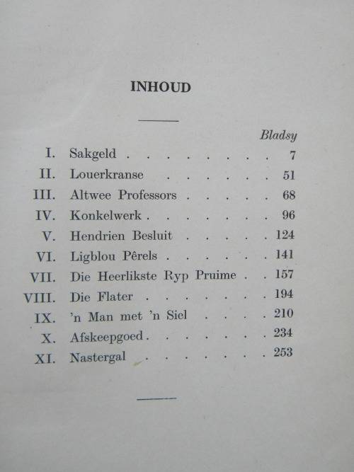 Hardeband. Uitgegee in 1938 deur Nasionale Pers met 294 bladsye. Die agterblad het skade, maar die binding is stewig en die teksgedeeltes is mooi skoon. Posgeld in RSA = R55.00.