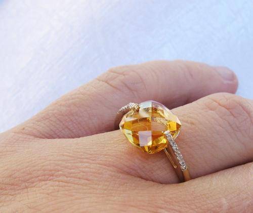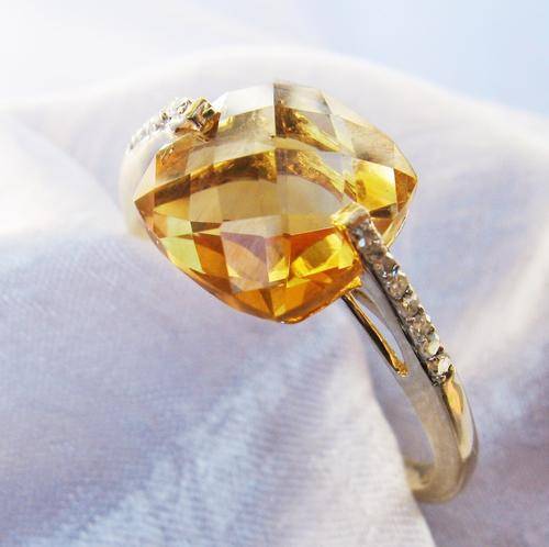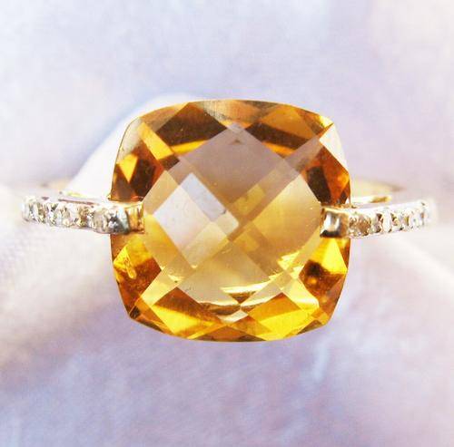 UK HALLMARKED 9CT YELLOW GOLD CITRINE & DIAMOND CLUSTER RING SIZE S