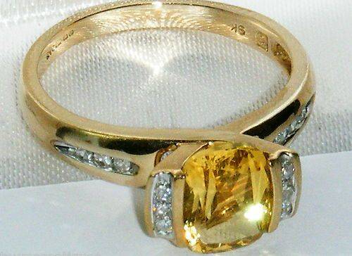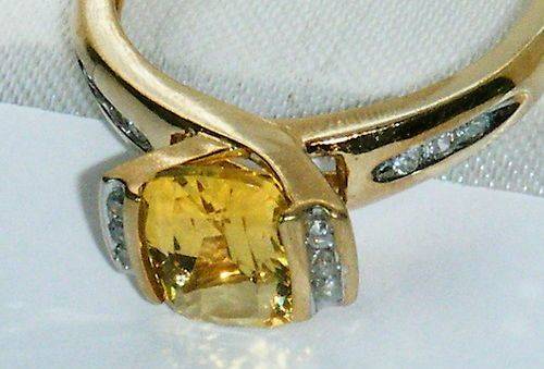 UK HALLMARKED 9CT YELLOW GOLD CITRINE & DIAMOND RING SIZE M