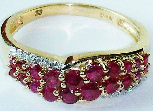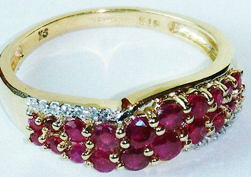 UK HALLMARKED 9CT YELLOW GOLD REAL RUBY & DIAMOND STUNNING RING SIZE O