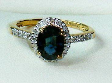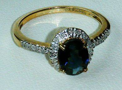UK LONDON HALLMARKED 9k 9CT YELLOW GOLD DIAMOND & 1 CARAT SAPPHIRE RING SIZE L