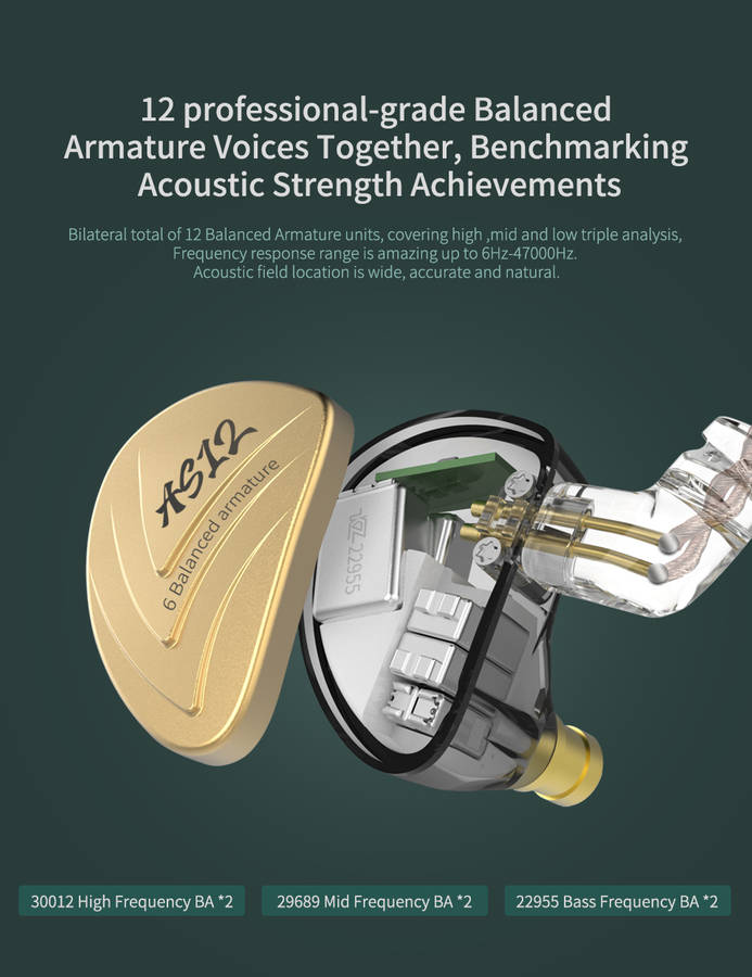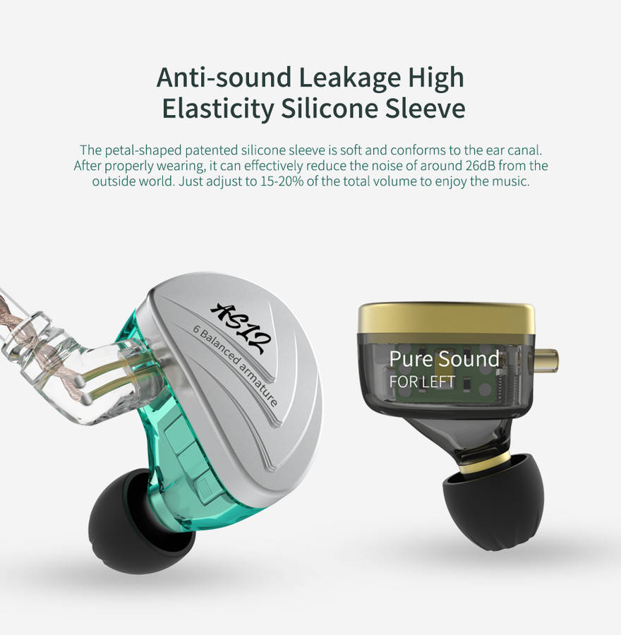 KZ AS12 12BA Balanced Armature Drives HIFI Bass Ear... (TYPE: WITH-MICROPHONE | COLOR.: SILVERGREEN)