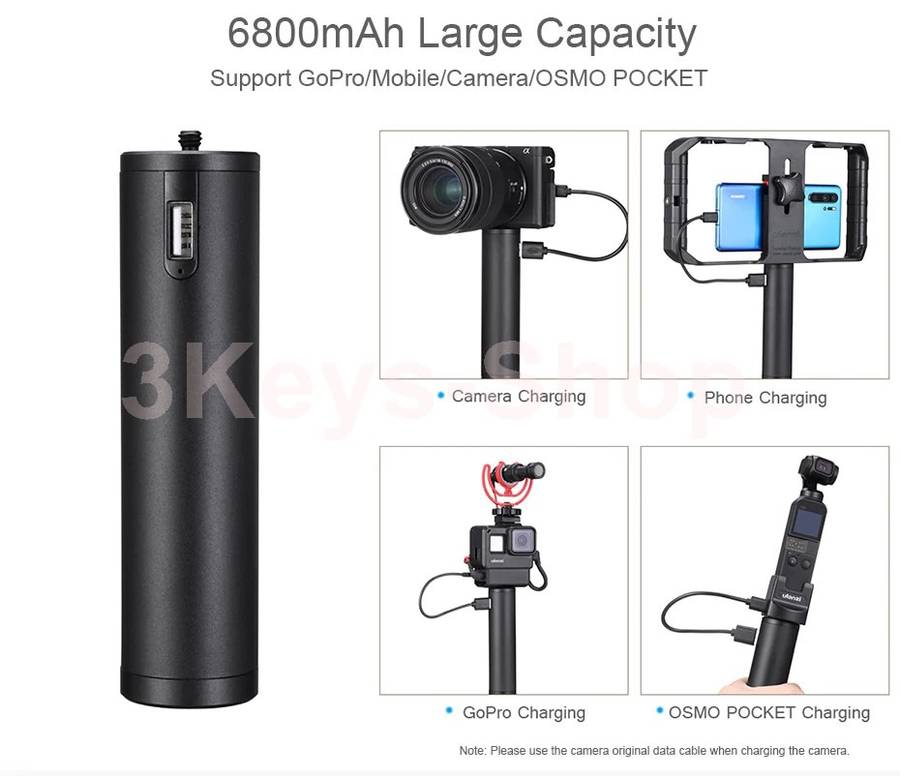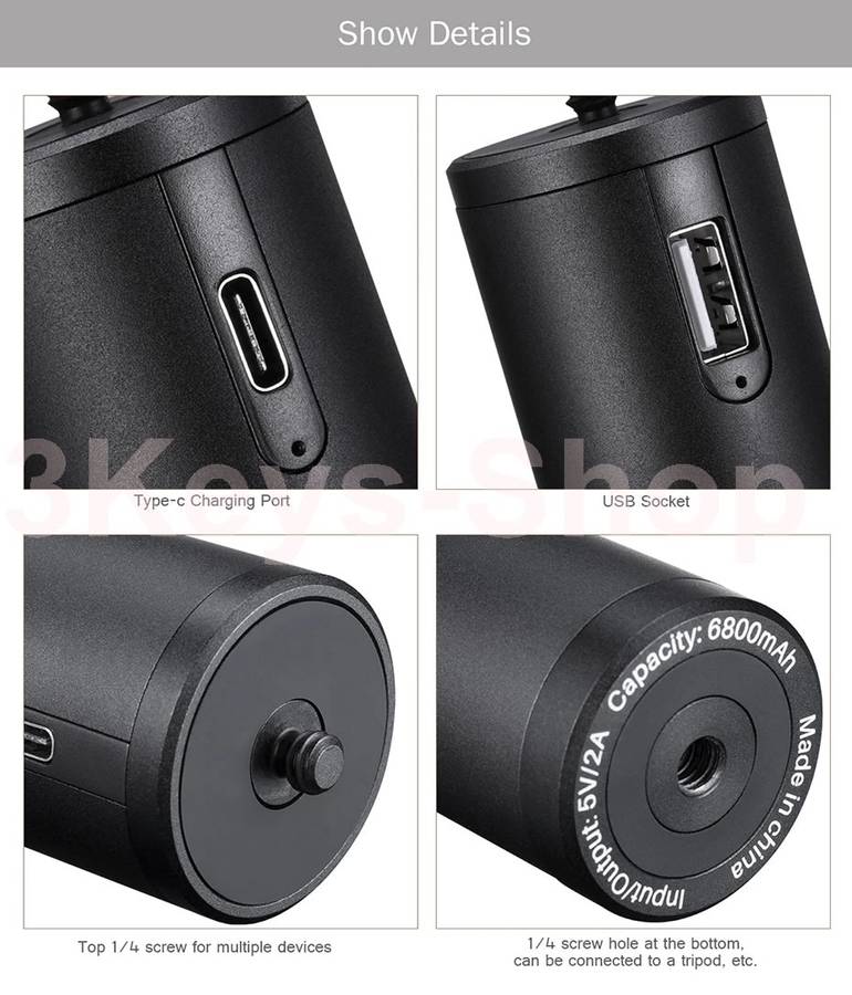 6800mAh large capacity battery hand grip with USB & Type-C charging port, is compatible with DJI OSMO pocket, action camera, compact digital camera, smartphone.