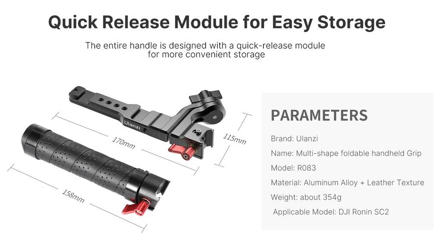 | Product | Ulanzi UURig R083 Foldable Handle Grip for DJI Ronin RSC2 and RS2 Handheld Camera SLR Shooting Sliding Handle |