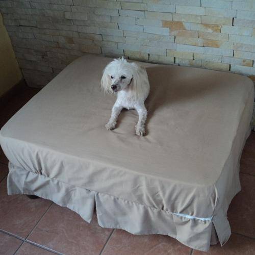 Linen not included in Ultimated Doggy Bed mattress and base.