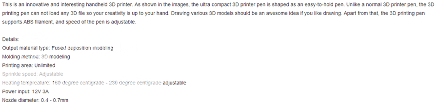 Ultra Compact Handheld 3D Printer Pen with Free Filaments ABS Material Great for Children Present