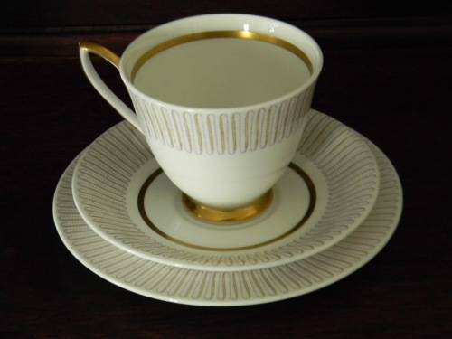 ULTRA RARE Royal Albert "Capri" 1950's Tea Trio ! Never Seen !! Beautiful Gold Gilt and Purple